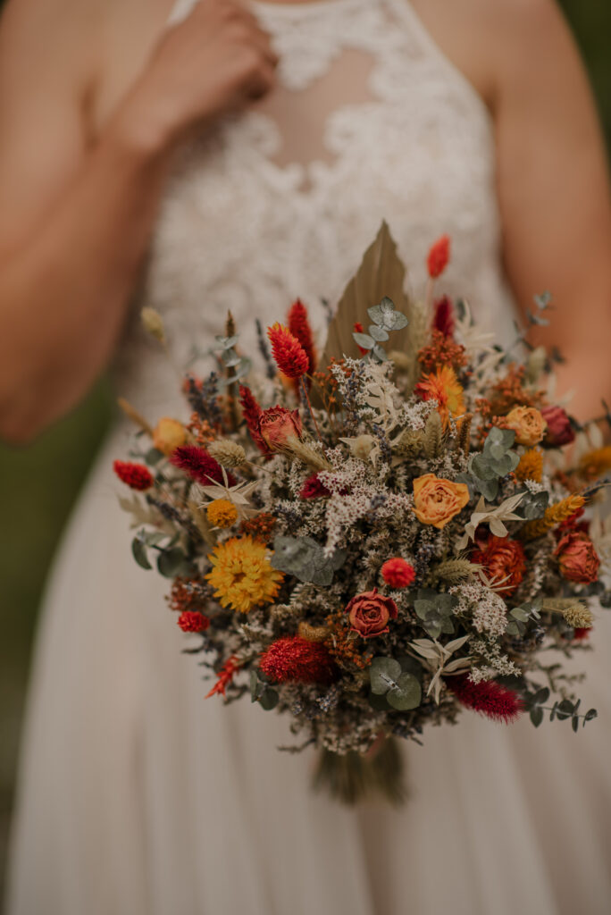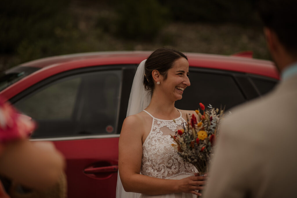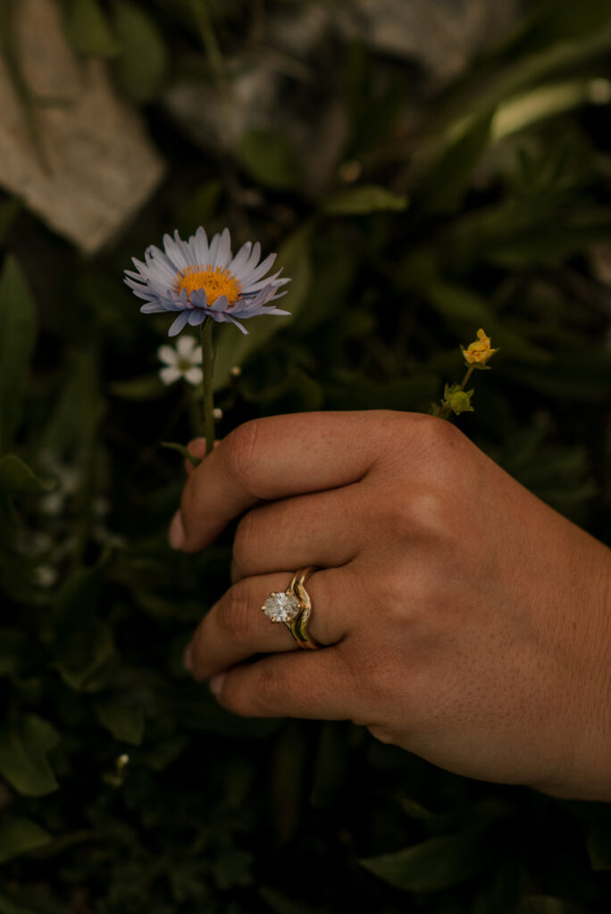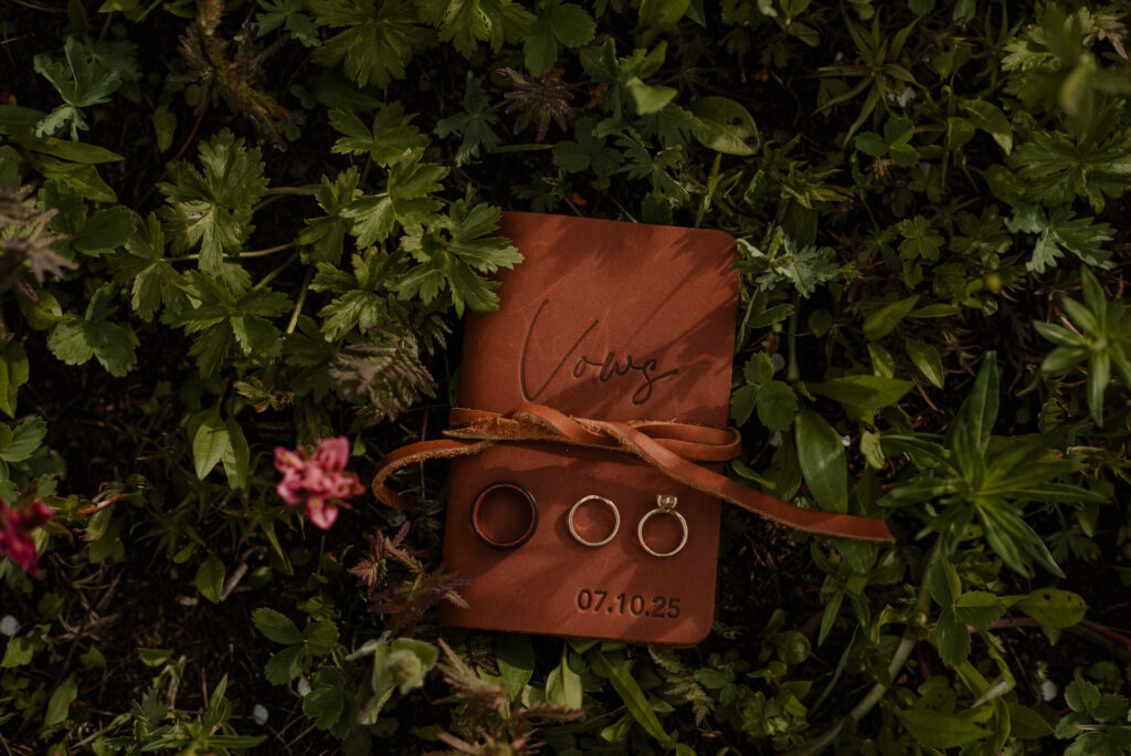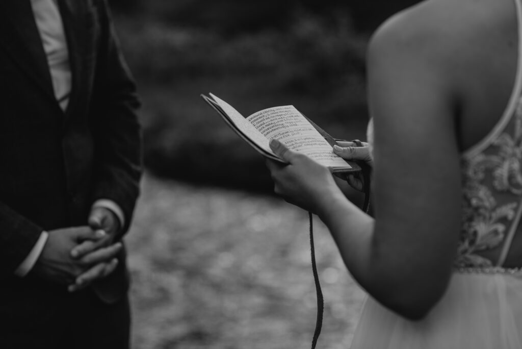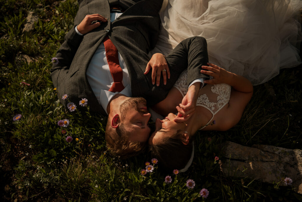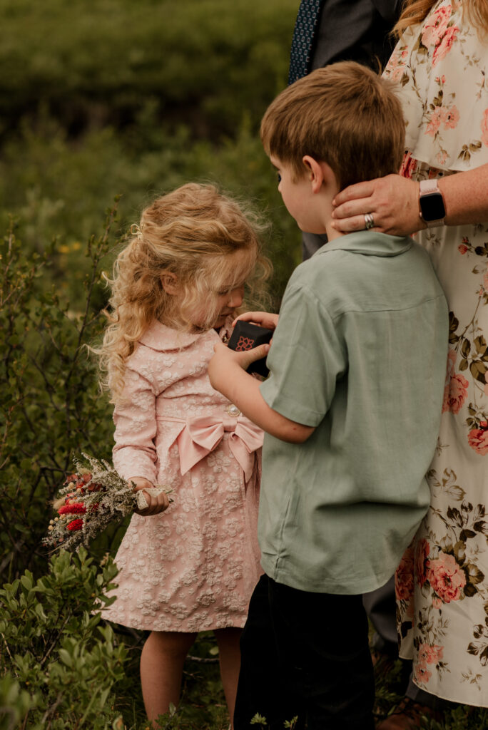 After we finished at the summit, we headed down to the meadow for some more photos. The wildflowers were in full bloom, all different colours scattered around the area. The mountains surrounded us. The sun was out and warmed us up, casting a golden glow across the quiet landscape. We hiked a little further down where Les and Chloe read their personal vows to each other. It was such an intimate, personal experience it almost made me cry too.