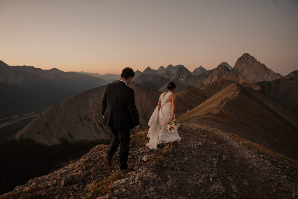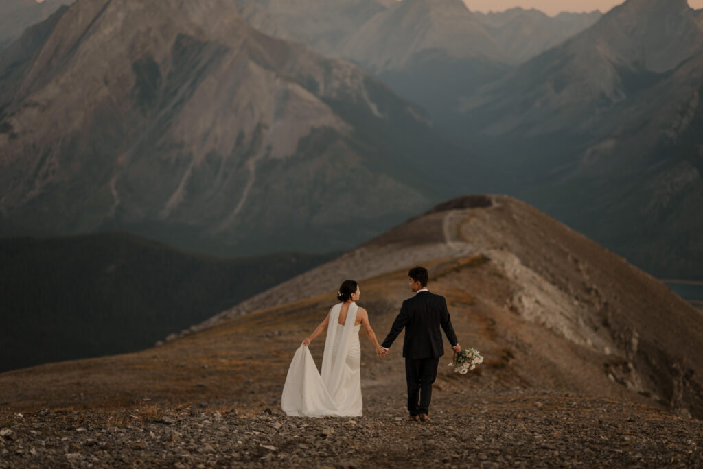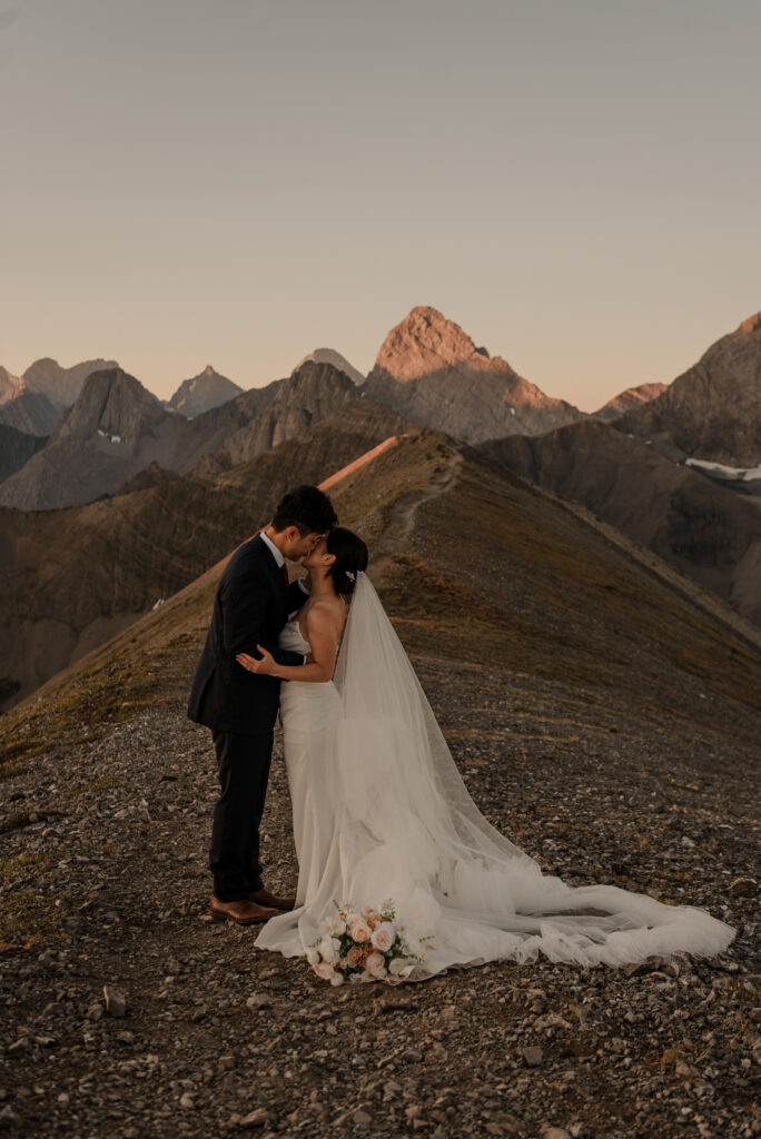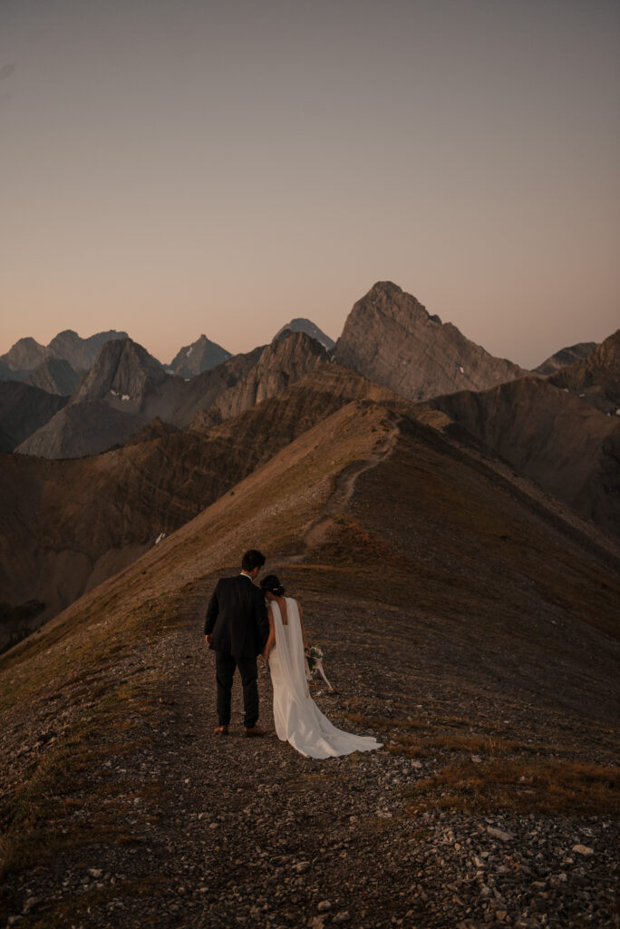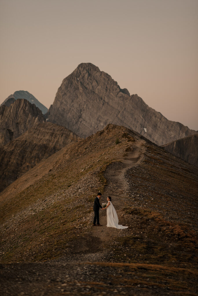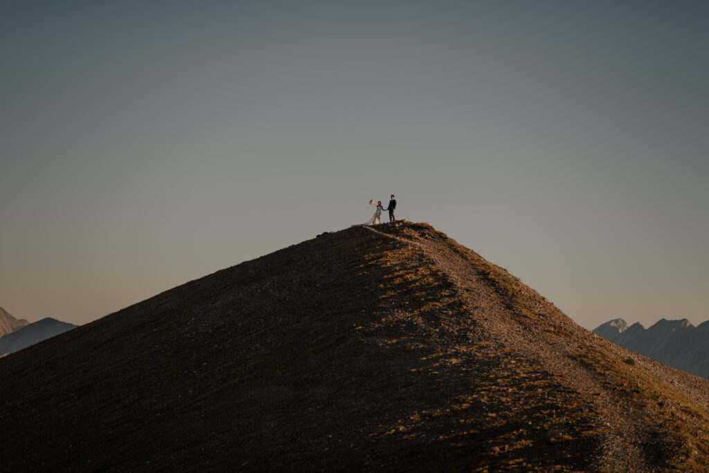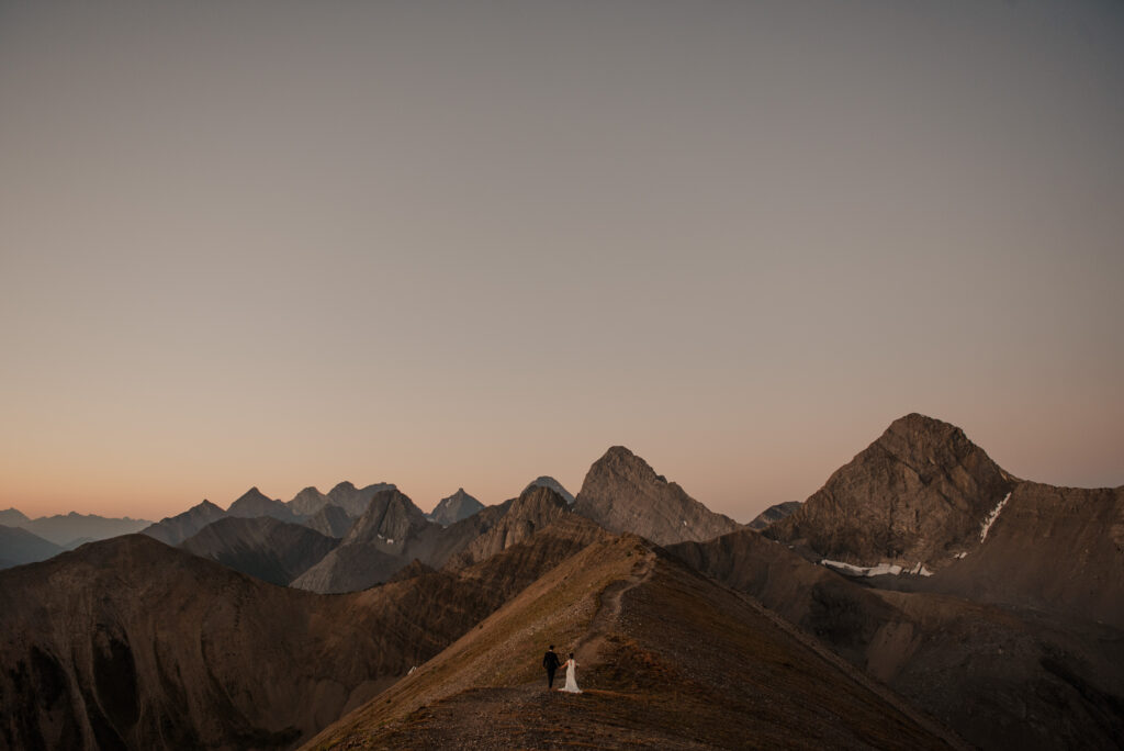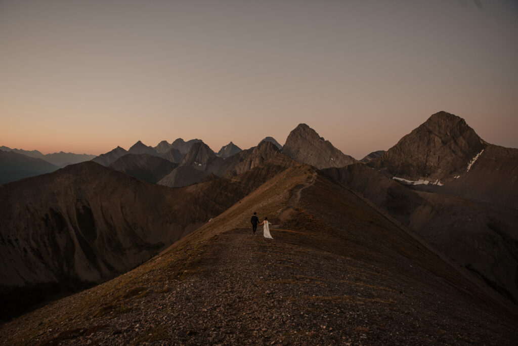 We started the hike in the wee hours of the morning and made it up before the sun started to come up. This ridge is one of the most beautiful views I’ve ever seen, and I love doing elopement photos up here! If you’re wanting to elope in the Kananaskis area, this is a good option.