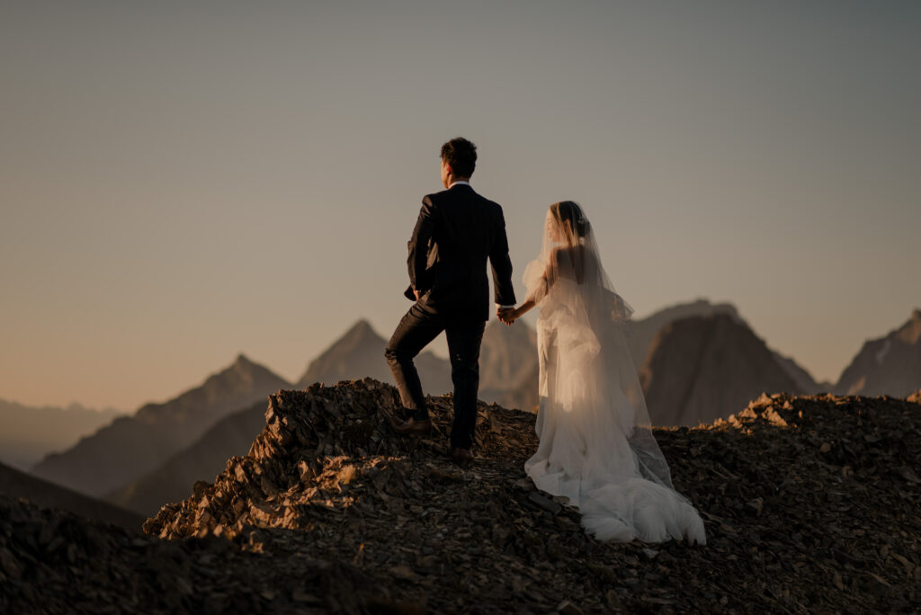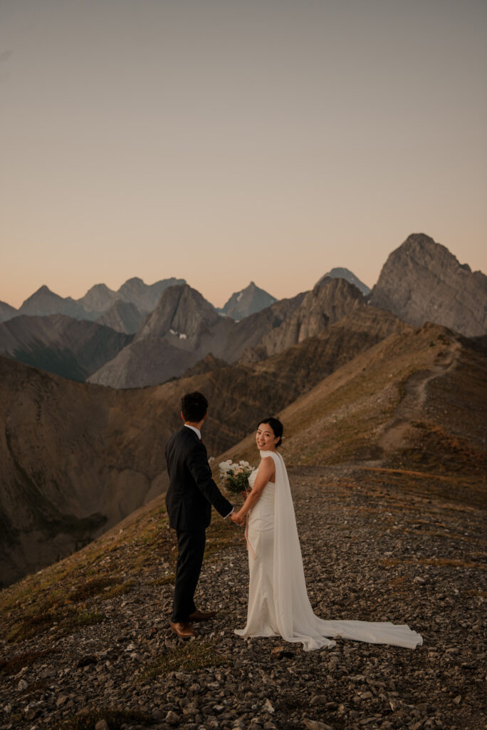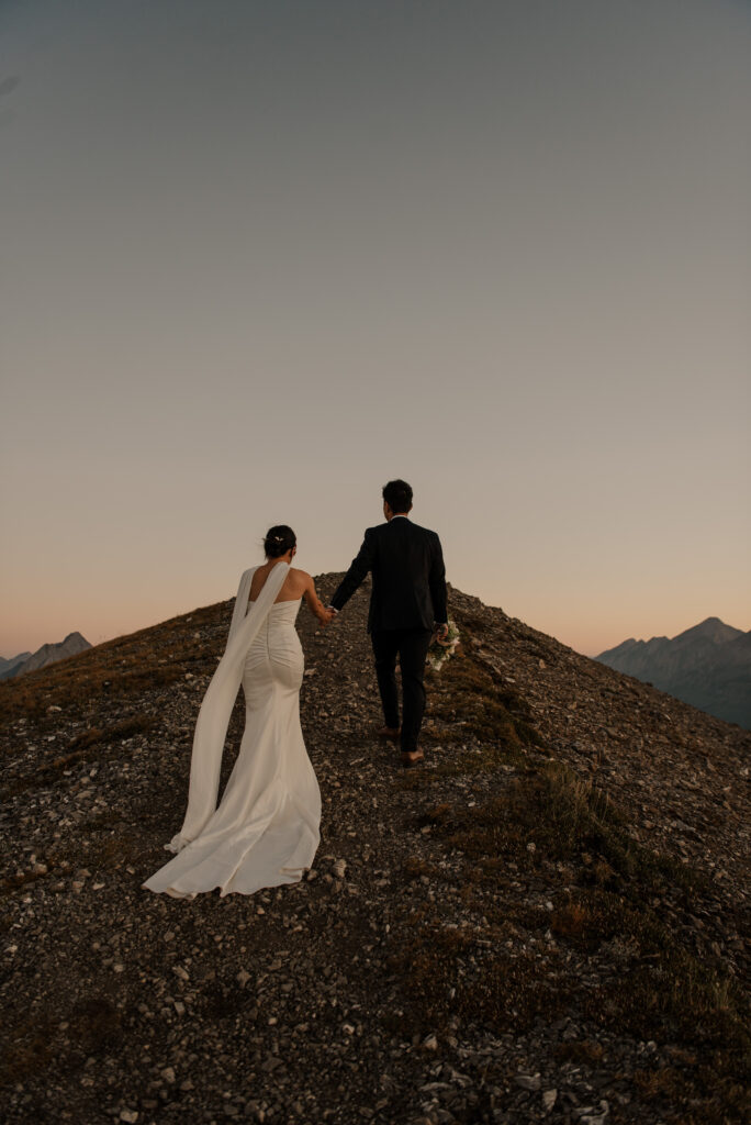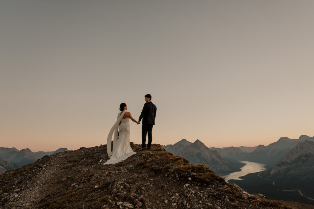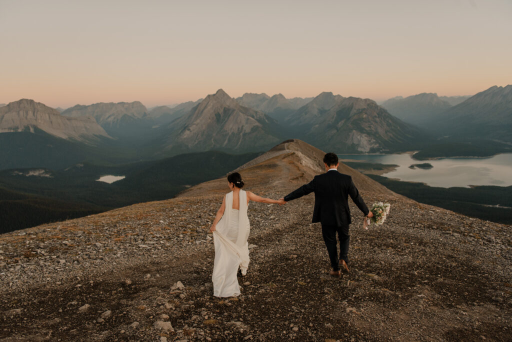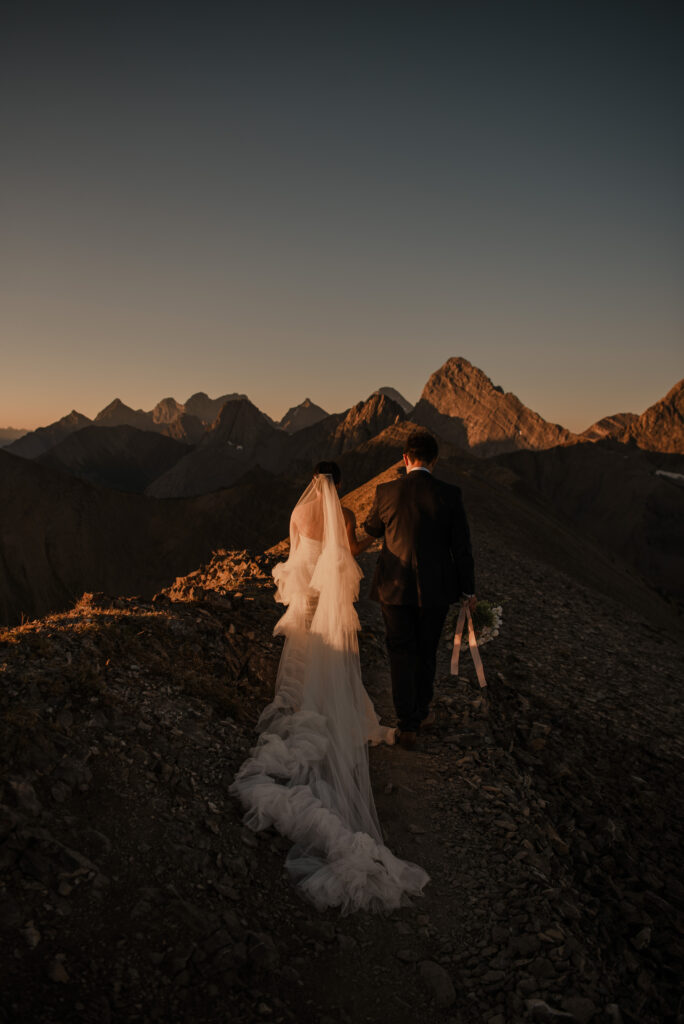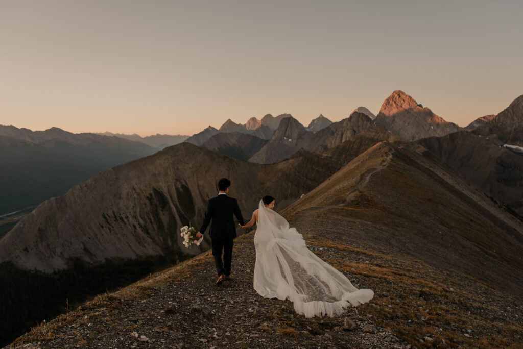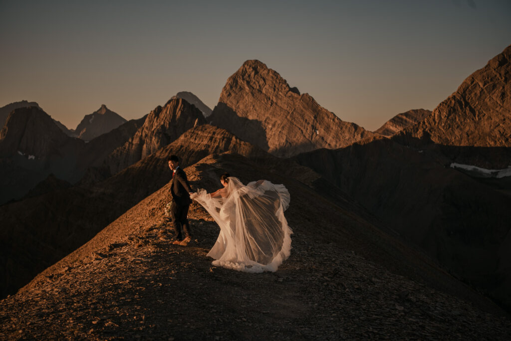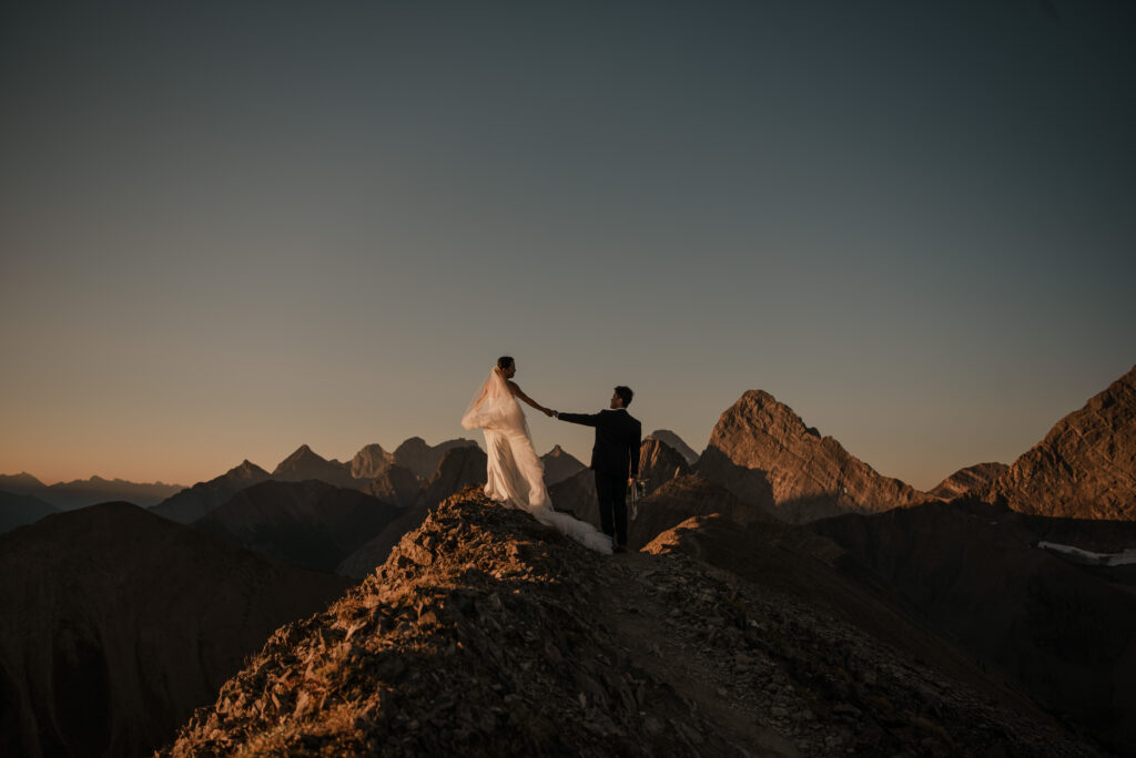 We started the hike in the wee hours of the morning and made it up before the sun started to come up. This ridge is one of the most beautiful views I’ve ever seen, and I love doing elopement photos up here! If you’re wanting to elope in the Kananaskis area, this is a good option.